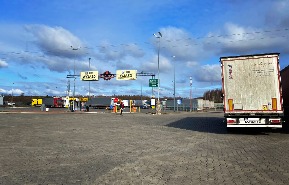 Najnowocześniejszy w Polsce północno-wschodniej parking dla samochodów ciężarowych i autobusów.
